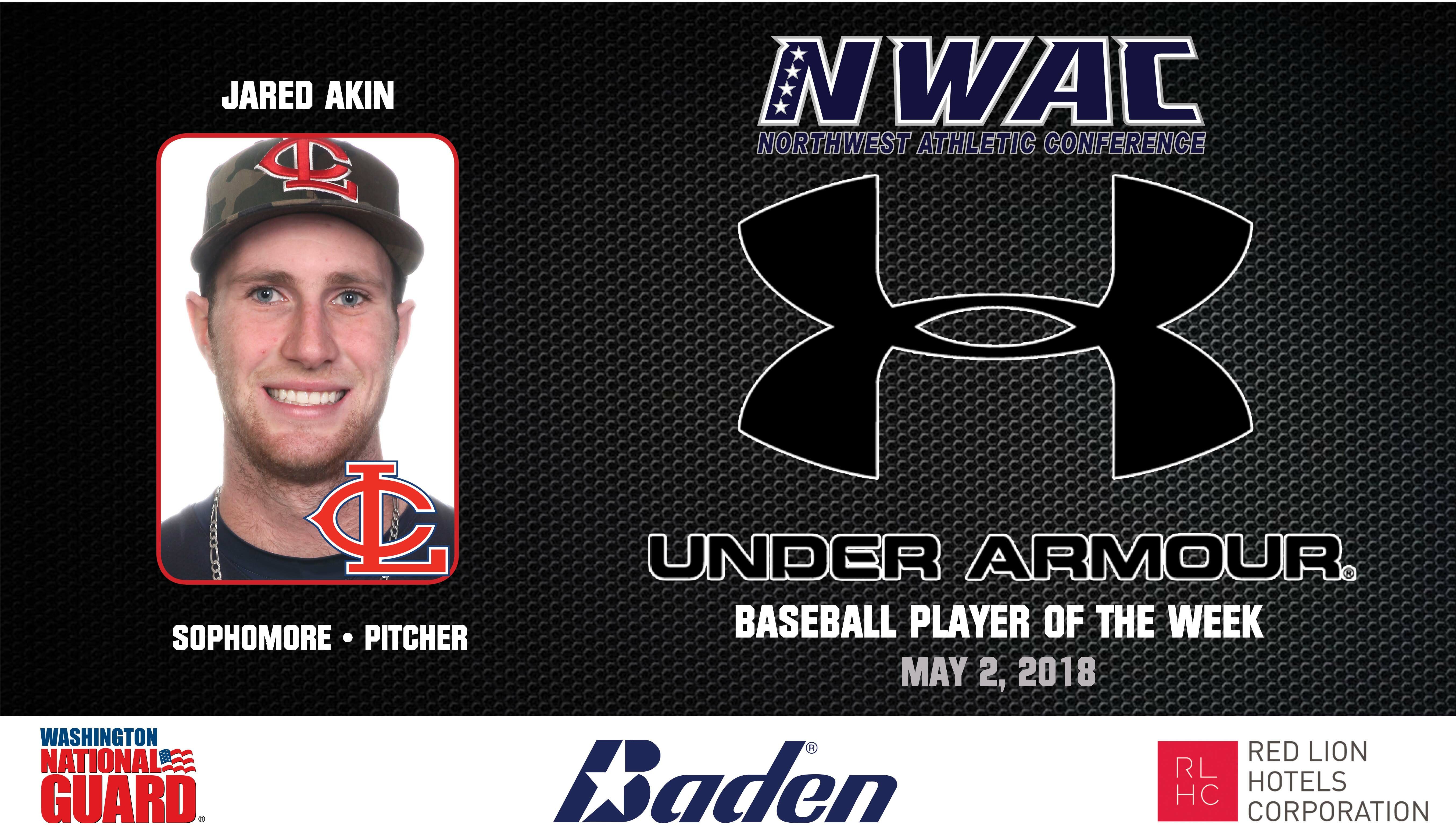 Lower Columbia freshman Jared Akin, Liberty HS / Hillsboro, OR was named the Pitcher of the Week. Akin was pivotal in a pair of wins last week including a 5 inning shut out against 2nd-ranked Edmonds in a 3-0 LCC win. In 9 innings of work, he allowed 4 hits with an ERA of 0.00.