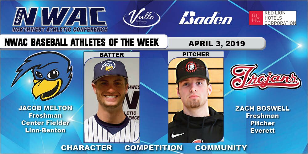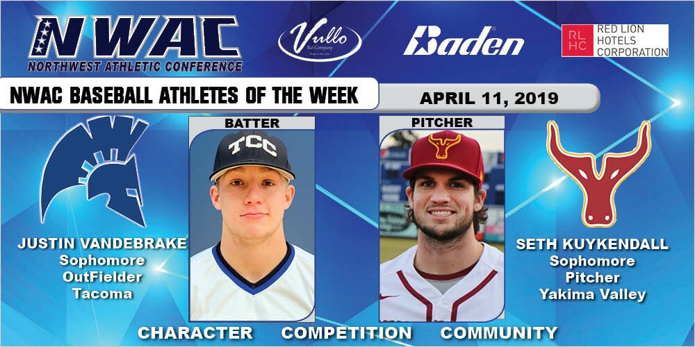 NOTE: Vullo Bat Company, based in Mead, Washington, is awarding a Vullo bat engraved with the student athlete's name to each NWAC Baseball and Softball Batter of the Week. Visit Vullo online at vullobatcompany.com and check out their social media pages on Instagram, Facebook and Twitter. All bats are hand crafted in the Northwest.