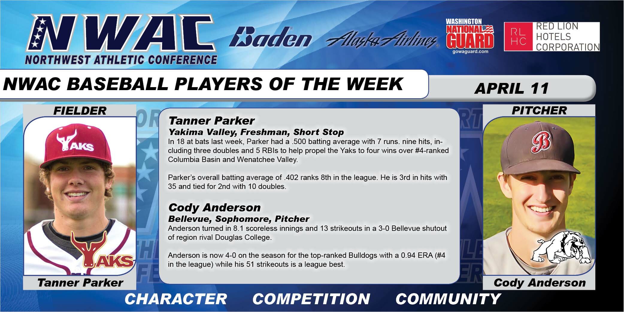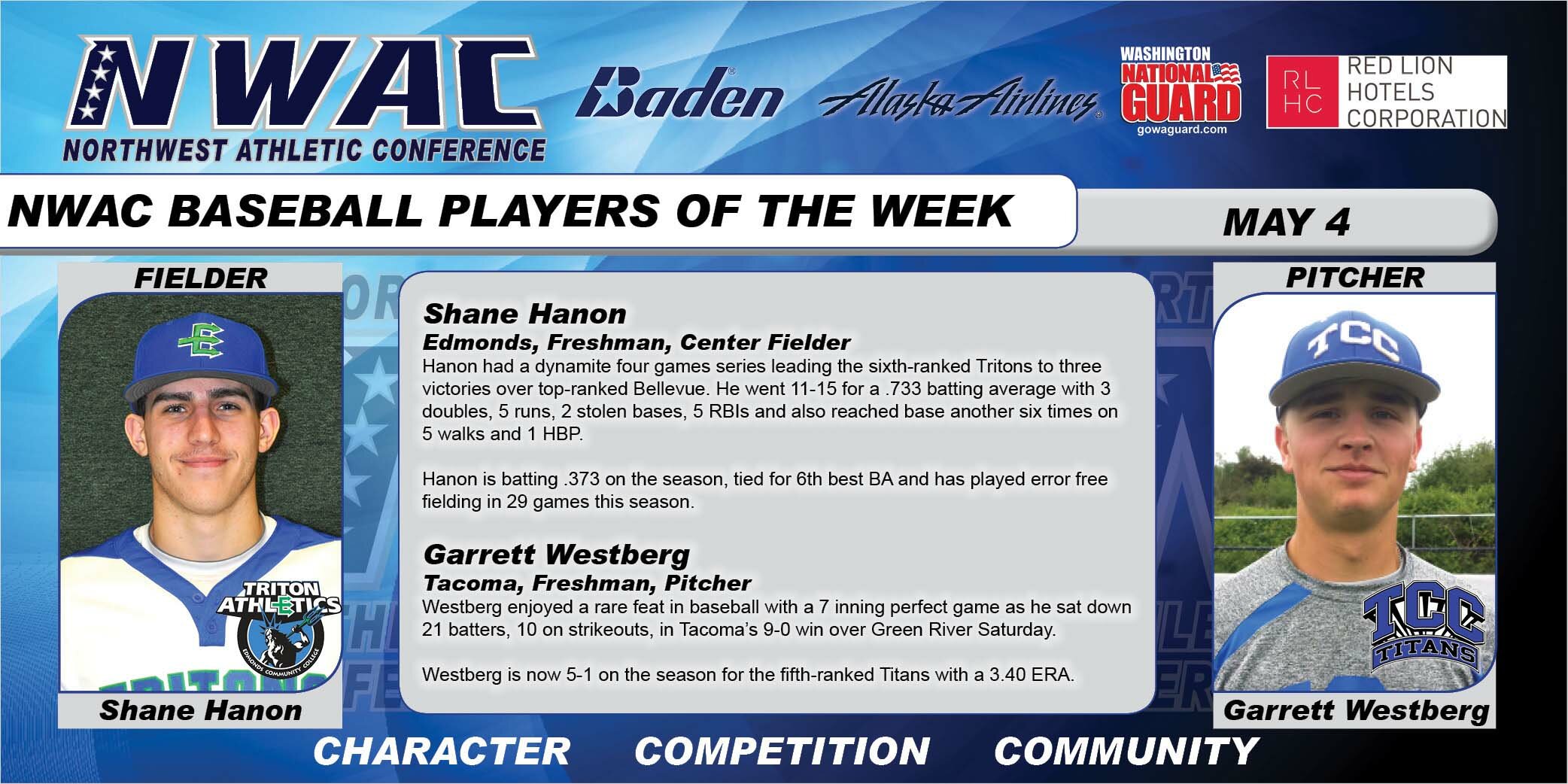 Baseball Under Armour Player of the Week & NWAC Players of the Week